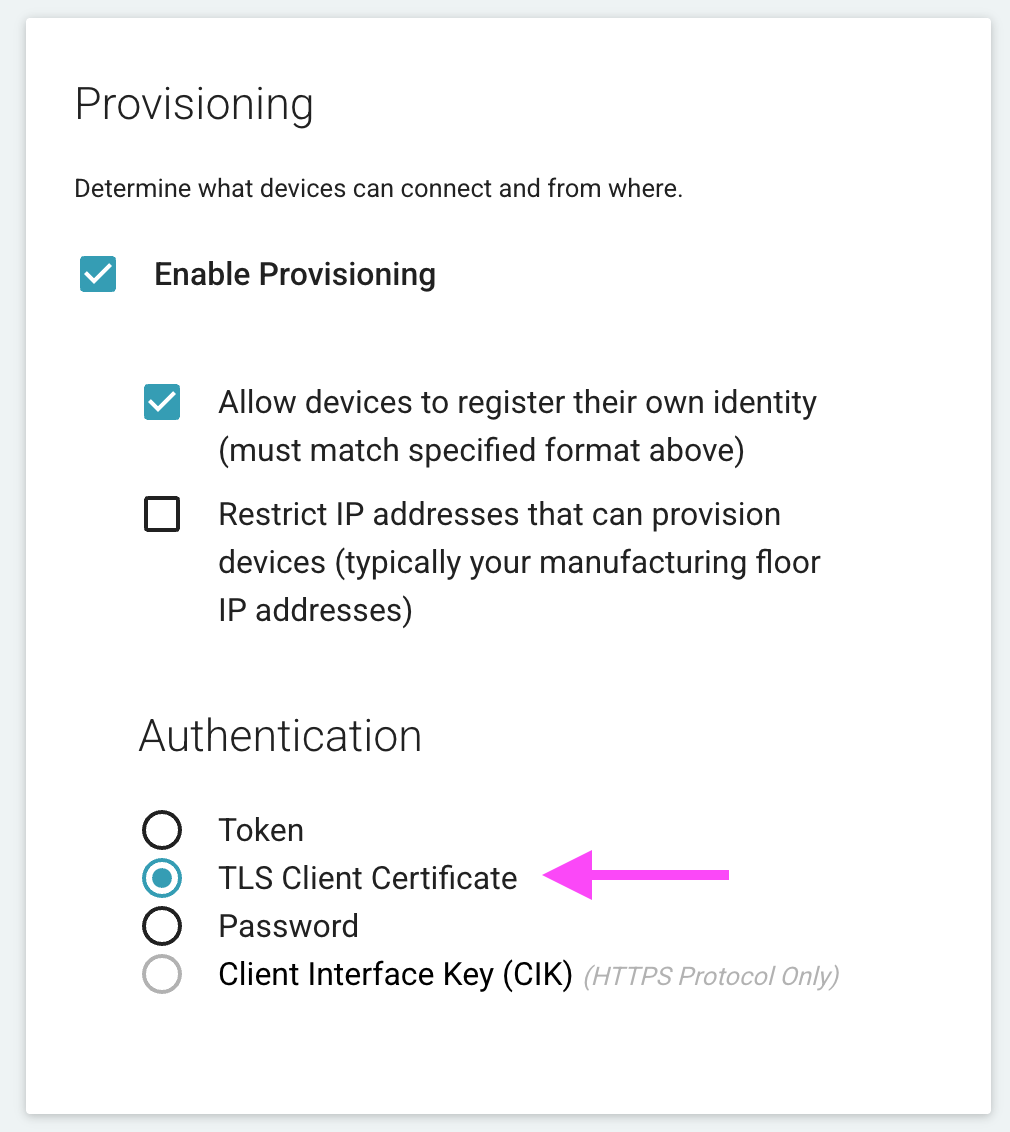 First ensure you have the IoT Connector's provisioning/authentication configuration set to TLS Client Certificate.
