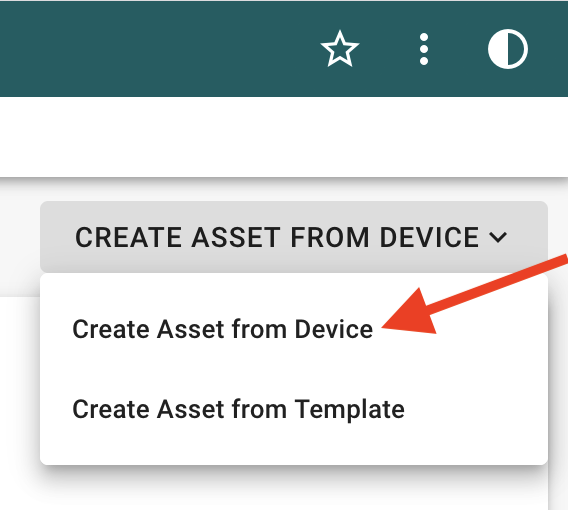 From the device details page, select "Create Asset from Device". This will create a new asset linked to your claimed device.